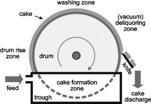 A rotary drum thickener consists of a slowly rotating drum, typically made of perforated metal or mesh, enclosed in a tank. The dewatering process operates as follows: